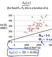 이 때 직선을 구하기 위한 과정 중 첫 번째로 가설(Hypothesis) 을 세워야 한다