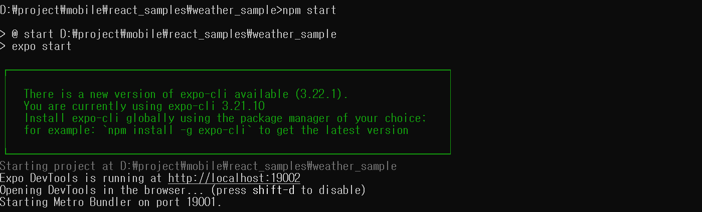원하는 경로에서 expo init ProjectName 실행