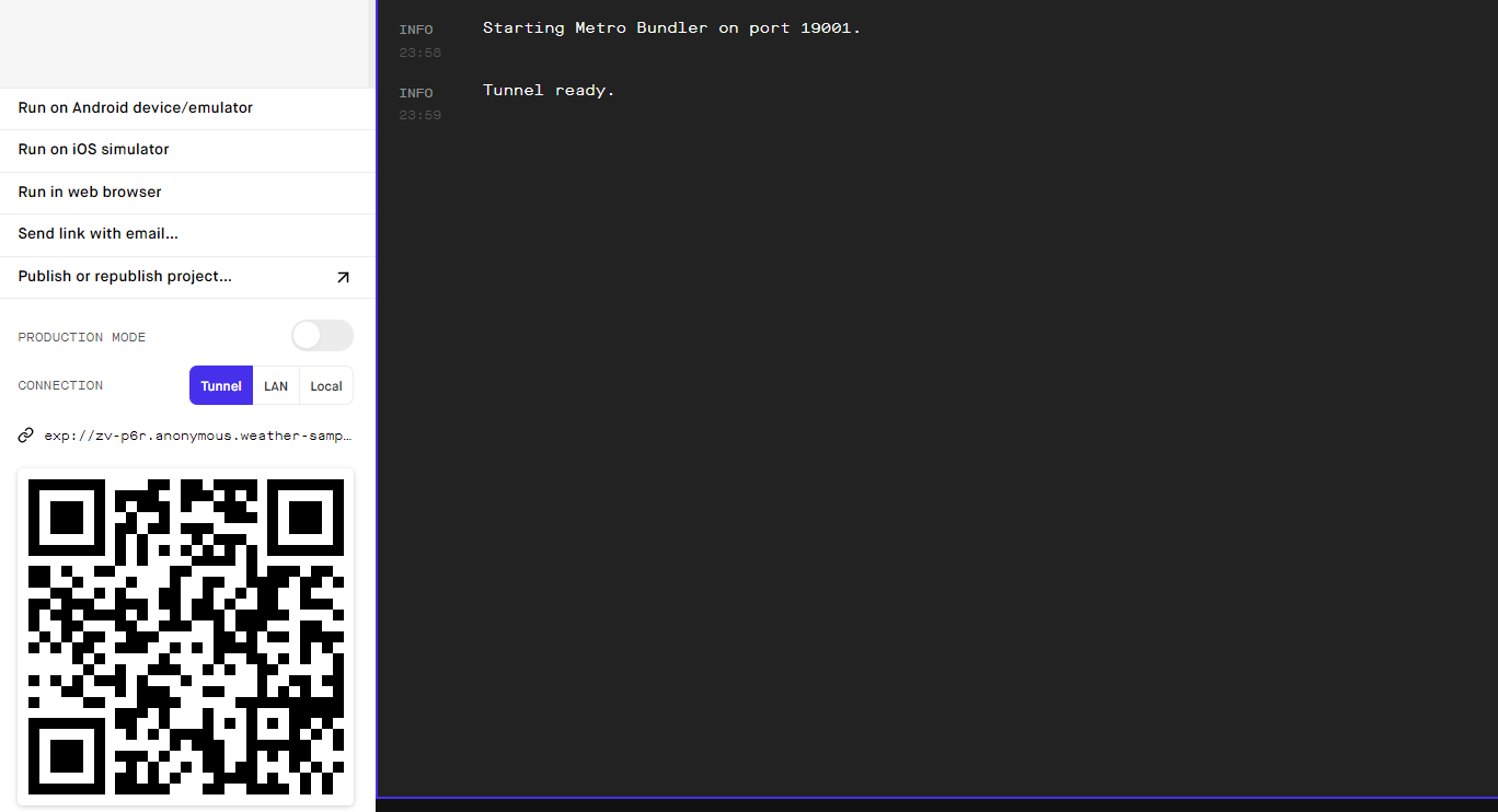 - expo 앱 설치 후 QR코드 투영하여 앱 실행하기!