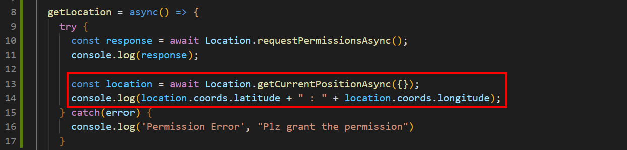 현재 위치를 가져오는 메소드는 getCurrentPositionAsync(options)이다