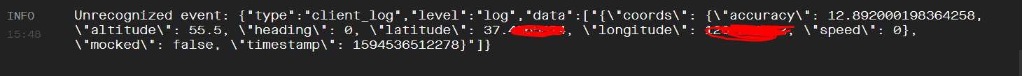 실행 결과 expo-client에서는 Unrecognized event로 표시된다